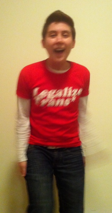 So I ordered my Legalize Trans* shirt and it arrived in the mail last week. You should get yours now! It’s really awesome, it’s nice soft fabric, cool design, and it fits! I got a Small or whatever the smallest size is, in red (yes!), and as you know I am a small person yet it was pretty much the right size – actually it fits better than some of my shirts. Plus, it’s an excellent way to silently promote visibility and awareness.