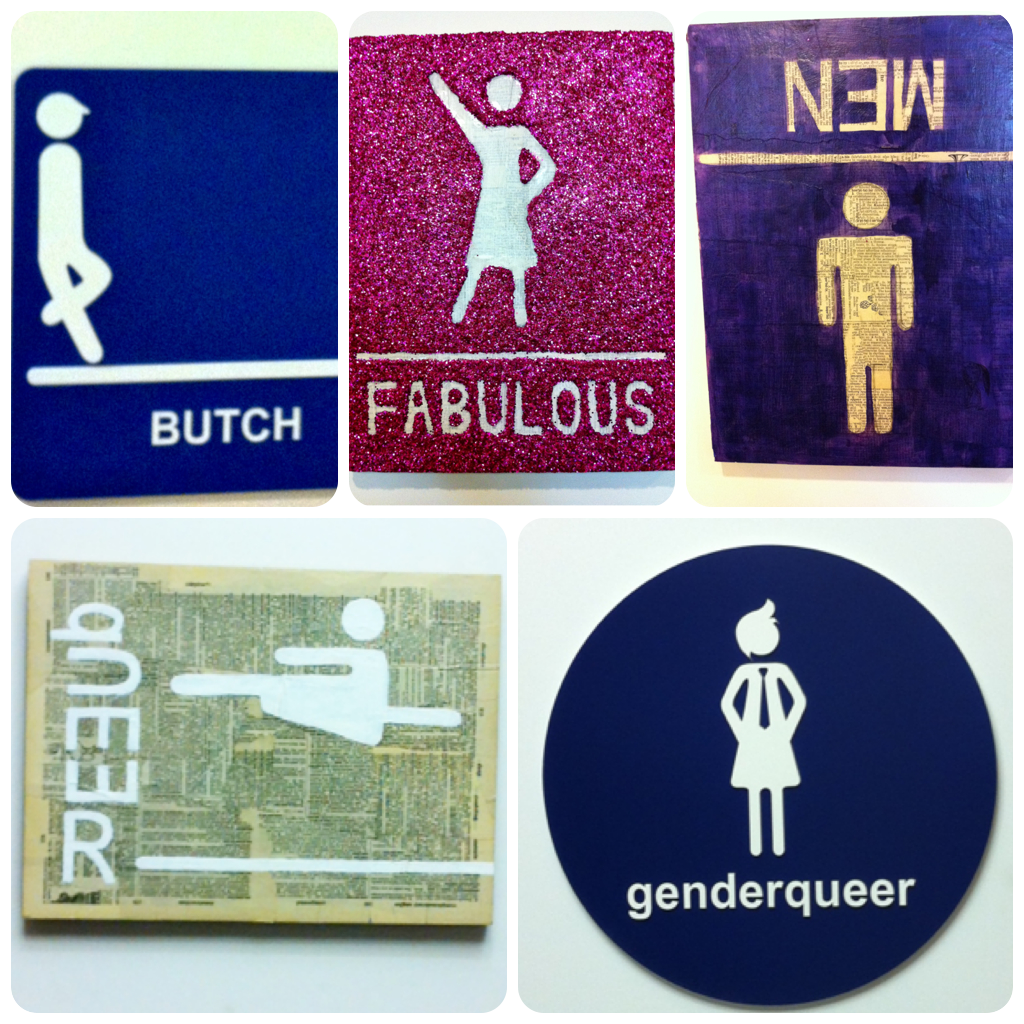 Gender-riffic Bathroom Signs. Artist credit goes to Lauren Quock http://laurenquock.com/