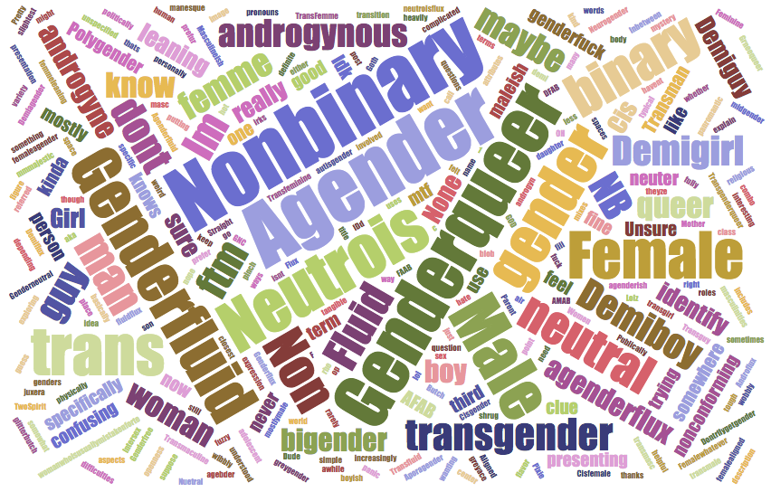 I refused to do a category grouping because this is an inherently diverse category. Moreover, as a “White Jewish Mexican living in the US” I always feel excluded by the options. Given the free-form answers, the analysis is not entirely accurate.